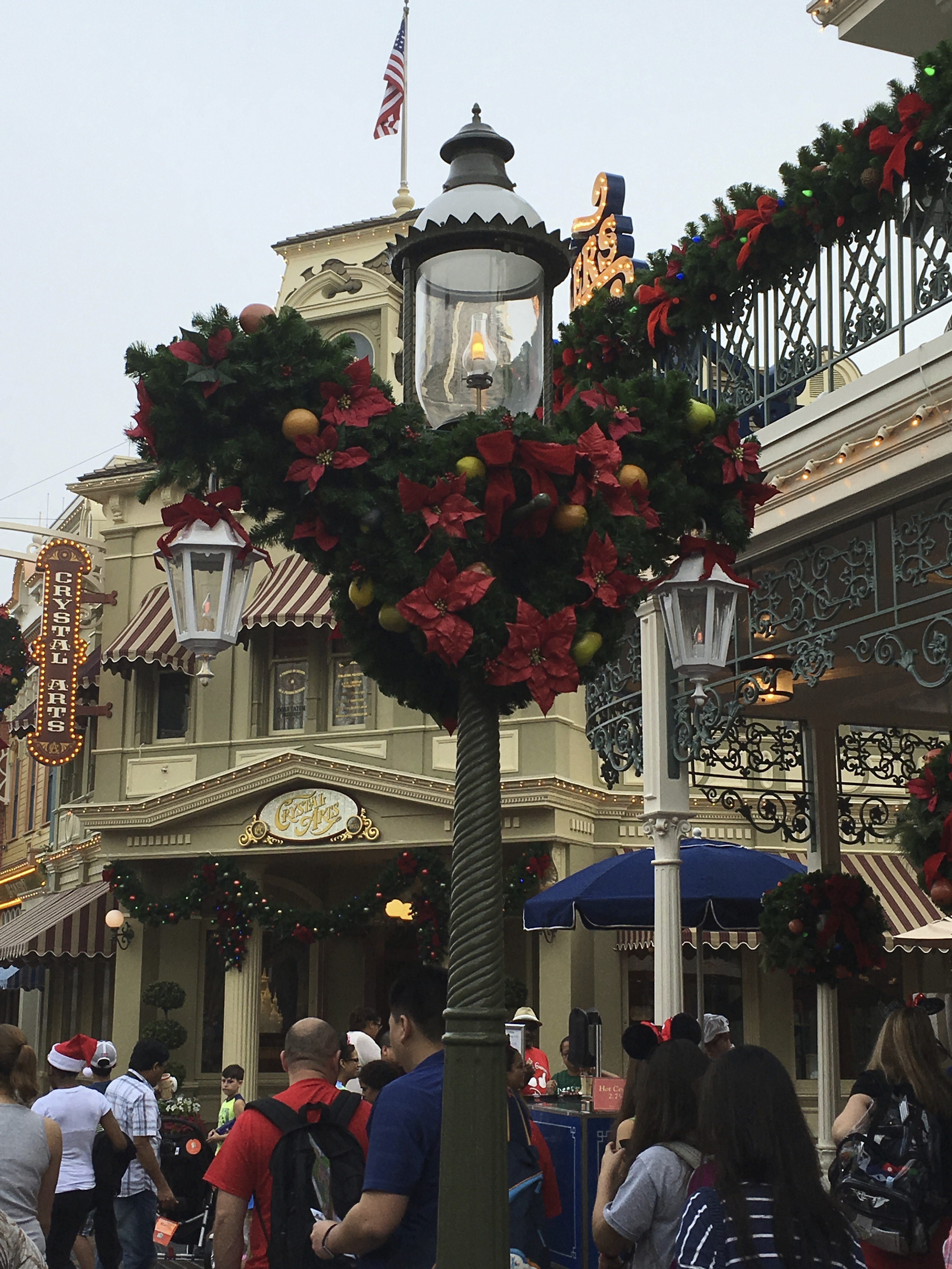 A giant gingerbread house decorated the lobby of the Grand Floridian. Wreaths of Mickey ears hung from lampposts in the Magic Kingdom. The Jungle Cruise was the Jingle Cruise.