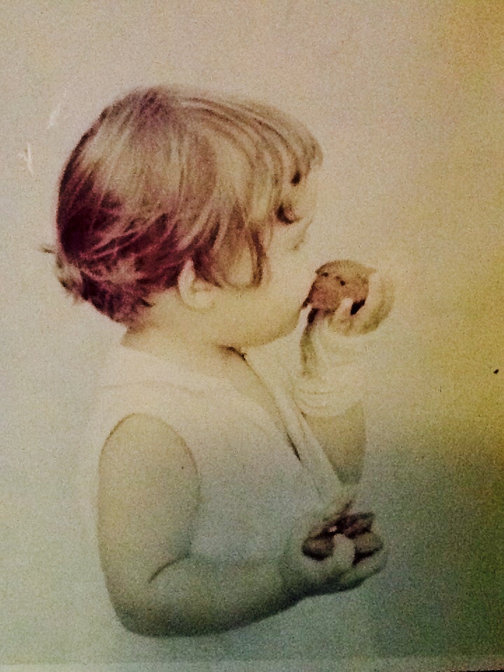 There are a few specialties that made my mom famous, though. One of those is her chocolate chip cookies. I grew up with cookies in my hand. This picture even shows me as a little girl with a broken hand full of cookies. Friends would beg my mom to bake her famous cookies. She always noted that there was a secret ingredient that we wouldn’t be able to pick out simply by taste. This extra touch added subtle flavor. Maybe you’ll be able to figure out her twist when you bake them.