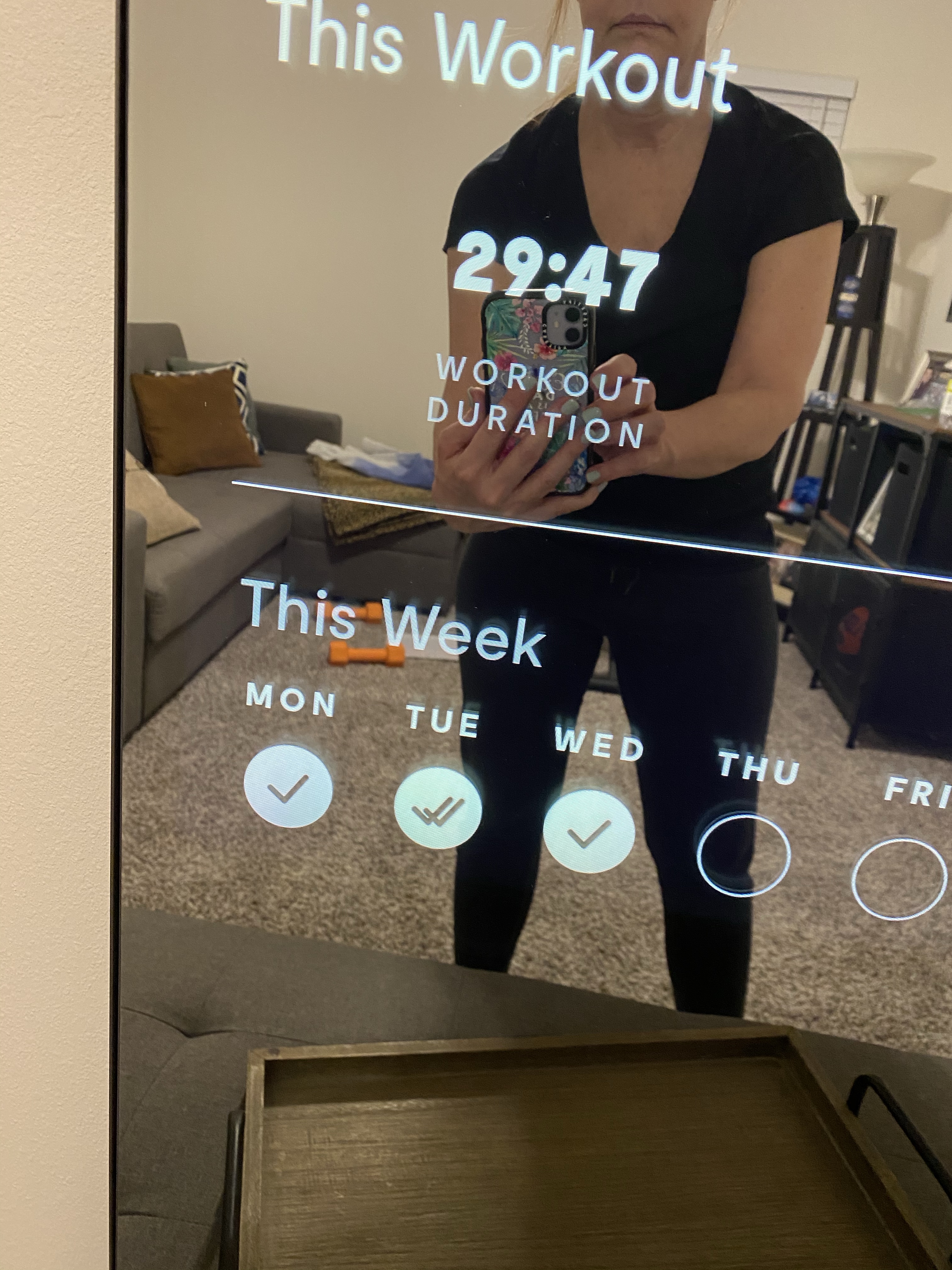One of the many things we love about our Mirror is that it simply looks like a full-length mirror whenever we’re not using it. No bulky pieces of equipment taking up space!