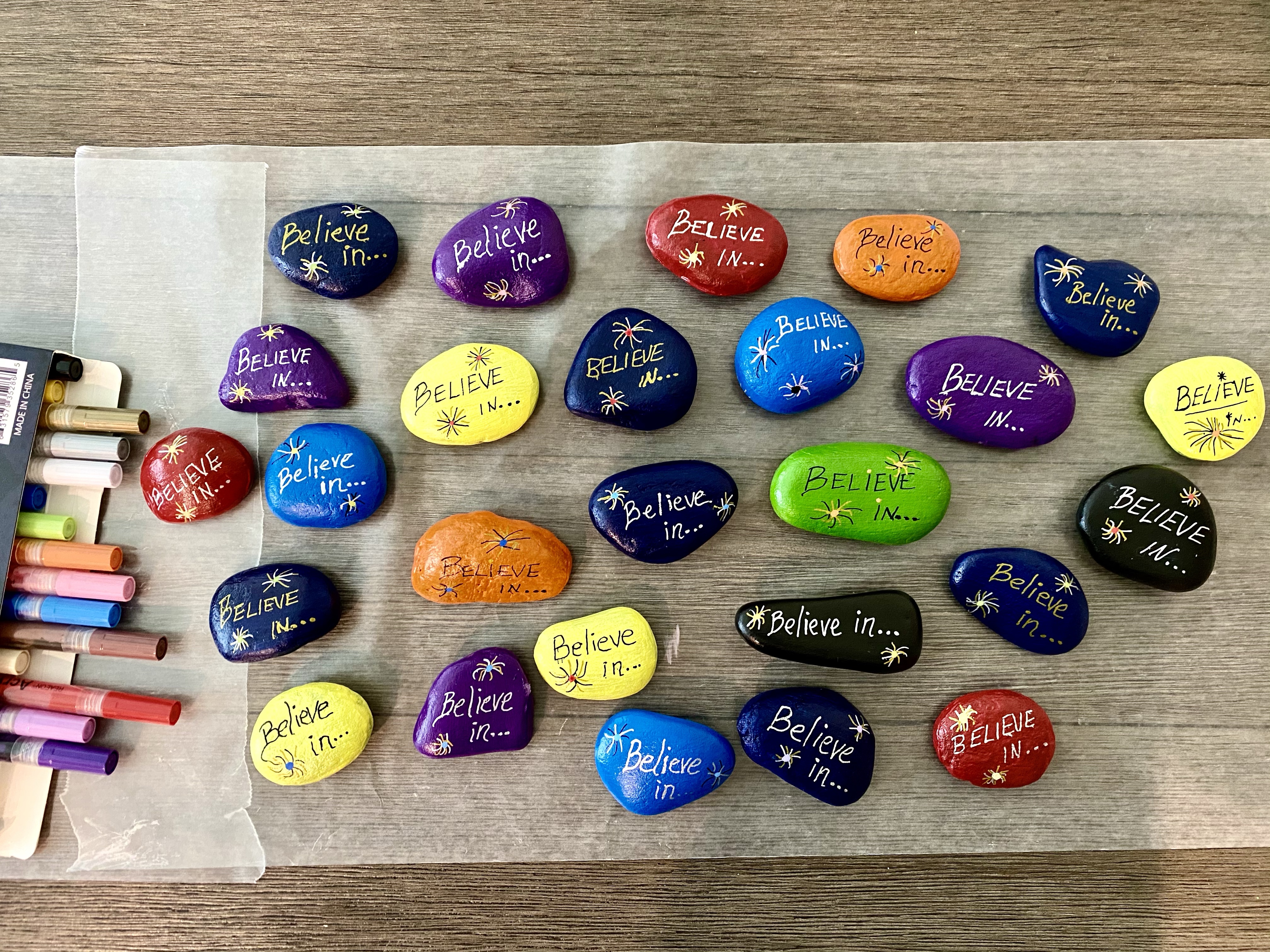 I want them to move on to the next chapter 🌟believing in themselves, 🌟knowing that they have what it takes to succeed. This is where the 🪨rocks come in. For their ‘going-away-presents,’ I wrote individual 📝notes to each student. The last line for every message was this: Always believe in yourself! ✨Those notes were put into bags with personalized rocks. After using some sneaky maneuvers to find out their favorite colors, I 🎨painted “Believe in…” on one side and their names on the other side. 🥰