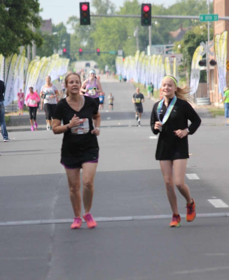 I was 👟running the half-marathon of the Joplin Memorial Run a few years ago. I felt ready on race day. My knee decided otherwise between miles seven and eight. In case you’re wondering, a half-marathon is 13.1 miles. Yeah- I still had some 🕓time left in that race. I was determined to finish on my own despite the race volunteers in golf carts who asked repeatedly if I needed a ride.😬 I walked. I jogged. I stopped in every medical tent to have someone work over that knee. I pulled out my 📱cell phone to let my family know that it was going to be longer than expected and to have ice ready. With about two miles left, a pacer found me struggling. 🙌She hopped up next to me with encouraging words- telling me that I could finish. That we were going to do this together. That she would stick with me to the end. And, she did just that- until a blonde little girl came running up to us. My pacer asked, “Is this your mom?” Angelina shook her head yes, and said, “I’ll run in with her.” 😍We crossed the finish line together, and a volunteer handed me the 🏅medal. Ken was waiting with an 🧊ice bag and a solid shoulder to lean on. Zane had a 🪑chair ready for me.