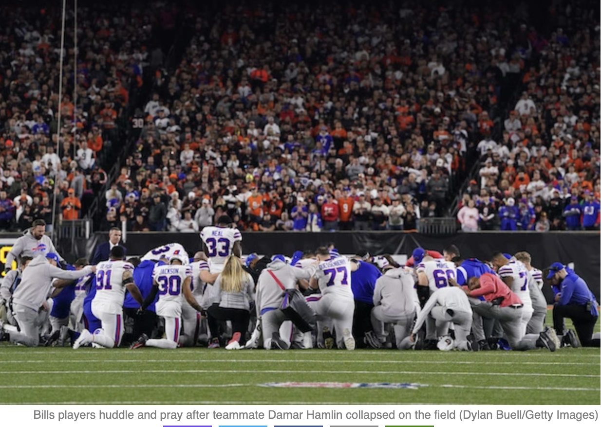 As 😱frightening and gut-wrenching as this story was in the beginning, there was goodness from the moment he fell on that field. ✨Medical staff acting quickly. ✨Players forming a circle around him, providing a shield of physical and spiritual comfort. ✨Fans in the stands and watching on TV, realizing the gravity of the scene and responding with an outpouring of love. We saw it all: